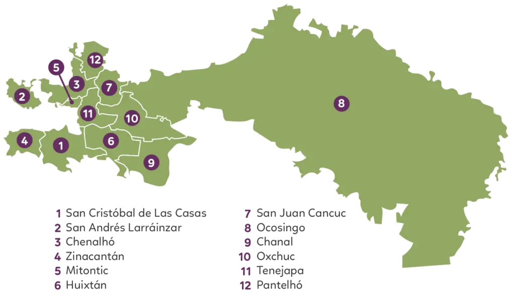 Municipio de incidencia: San Juan Cancuc, Ocosingo, Chanal, Oxchuc y Tenejapa.